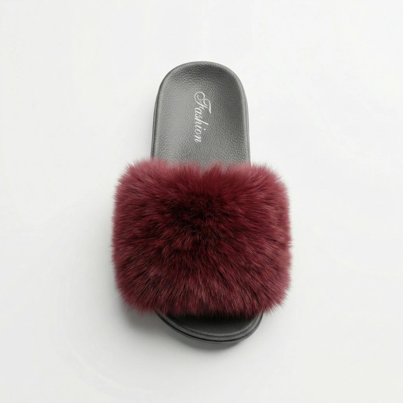 Теги: жіночі капці, пухнасті шльопанці, кімнатне взуття, бордові капці, домашні тапочки, капці Fashion, взуття для дому