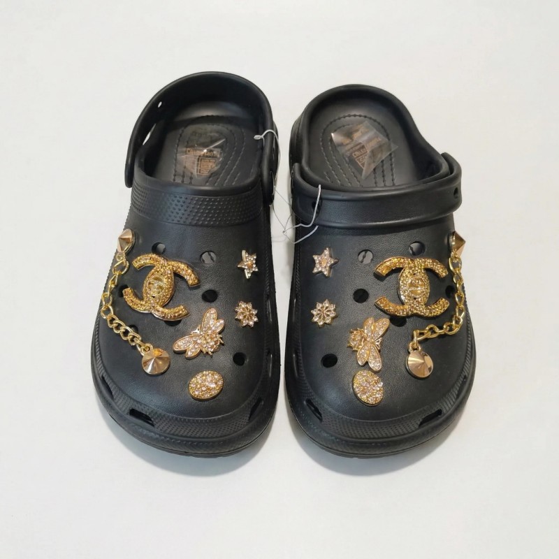 Теги: жіночі крокси, крокси чорні, сабо жіночі, крокси з декором, літнє взуття, зручне взуття, крокси золото, взуття для дому