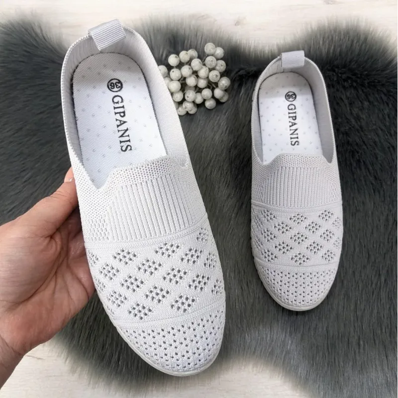 Ці білі текстильні сліпони від бренду Gipanis — це кохання з першого кроку. Вони поєднують у собі неймовірну легкість, стиль та комфорт, який так необхідний у спекотний сезон. Верх виконаний з якісного дихаючого текстилю (в'язана сітка) з красивим візерунком, що забезпечує ідеальну вентиляцію стопи. Світлий, майже білий колір робить цю пару універсальною: вона пасуватиме і до романтичної сукні, і до улюблених джинсів. Анатомічно правильна форма та м'яка підошва гарантують, що ваші ніжки не втомляться навіть після довгих прогулянок. Відсутність шнурків дозволяє взуватися миттєво — просто всунули ніжку і пішли підкорювати світ! Характеристики: Бренд: Gipanis. Тип: Мокасини / Сліпони. Сезон: Літо / Тепла весна. Колір: Білий / Світло-сірий (White/Light Grey). Матеріал верху: Текстиль (сітка). Розмірний ряд: 37, 38, 39, 40, 41.