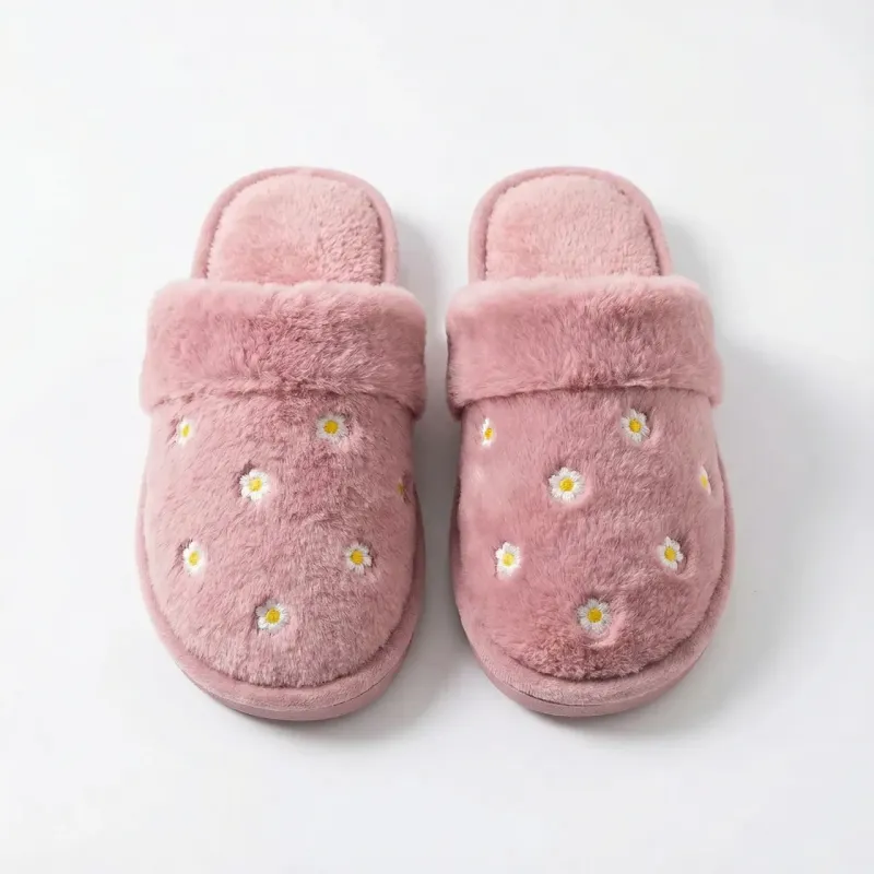 М'які домашні капці для жінок, виготовлені з плюшевого матеріалу. Колір: рожевий з ромашками. Розмір: 40-41. Ідеальні для домашнього використання.