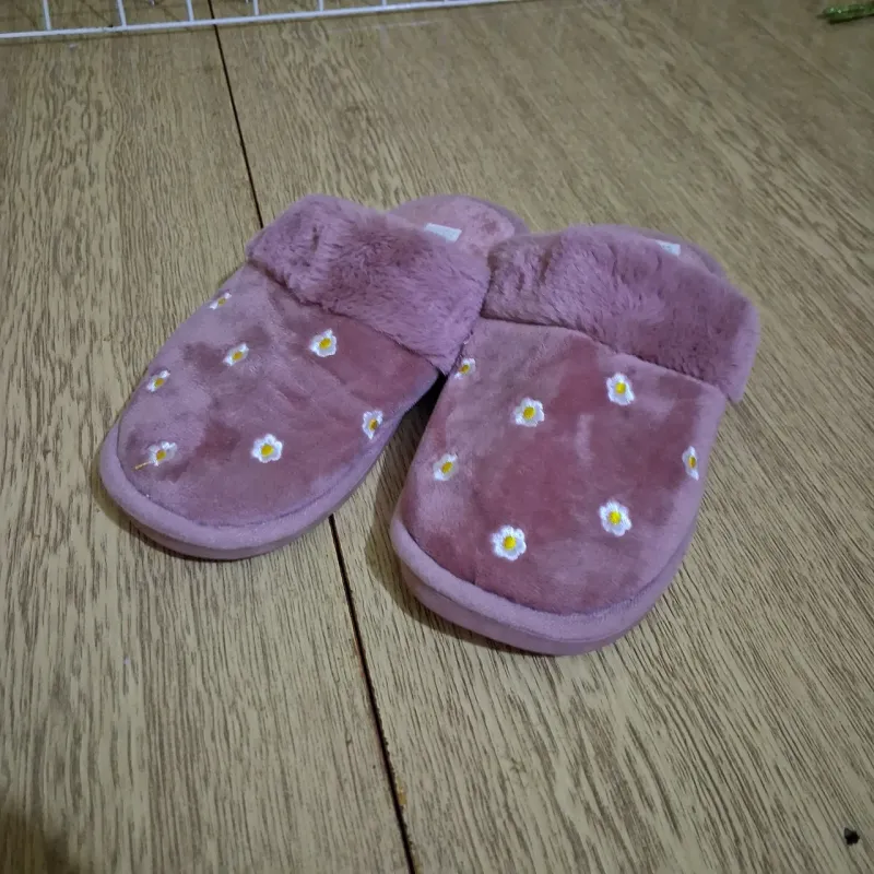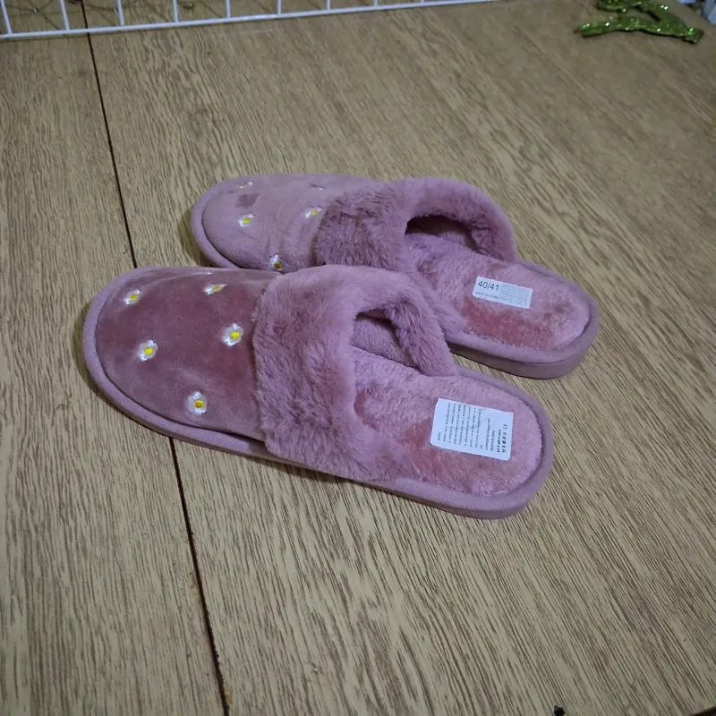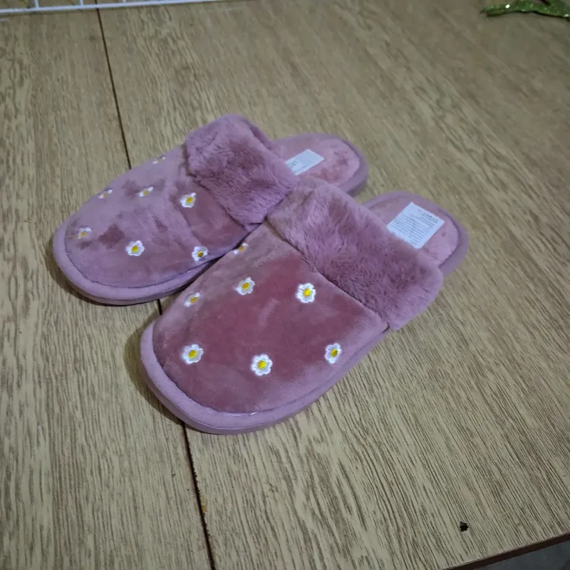 Ніжні та неймовірно приємні на дотик жіночі кімнатні тапочки, які подарують вашим ніжкам тепло та комфорт. Модель виконана у красивому припиленому рожевому кольорі з м'якого плюшу (штучне хутро). Головна родзинка дизайну — мила вишивка у вигляді білих ромашок, що додає взуттю весняного настрою навіть у холодні зимові вечори. Тапочки мають класичний фасон із закритим носком, що добре зберігає тепло. Устілка також хутряна та м'яка. Підошва гнучка, не ковзає та не створює зайвого шуму при ходьбі. Це ідеальний варіант для затишного домашнього відпочинку або як милий подарунок для близької людини. Особливості: Матеріал: Високоякісний м'який плюш, який не "лізе" та легко чиститься. Дизайн: Трендовий квітковий принт (ромашки). Комфорт: Легкі, теплі та не парять ногу. Характеристики: Тип: Кімнатні капці Матеріал верху: Плюш (Текстиль) Колір: Рожевий (Пудра) Декор: Вишивка "Ромашки" Розмір: 40-41 Сезон: Осінь / Зима / Весна