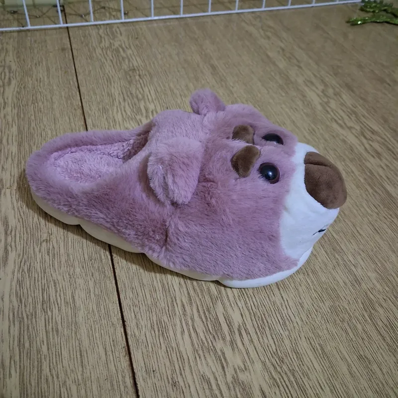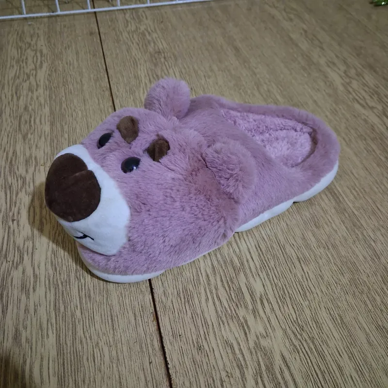 Неймовірно милі та пухнасті домашні тапочки у вигляді популярного персонажа (рожевого ведмедика). Ця модель — ідеальний подарунок для дівчат та жінок, які цінують затишок і оригінальні речі. Верх виконаний з густого, приємного на дотик штучного хутра "тедді" у припиленому рожево-бузковому кольорі. Капці об'ємні, м'які та дуже теплі — вони буквально огортають ніжку комфортом. Дизайн з мордочкою ведмедя (об'ємний носик, вушка, очі) виглядає дуже ефектно і піднімає настрій. Підошва виготовлена з гнучкого матеріалу (гума/ПВХ), не ковзає та надійно прошита/проклеєна. Особливості: Дизайн: Трендовий стиль "іграшка на ногах". Комфорт: М'яка устілка та утеплення з усіх боків. Універсальність: Підходять як для дітей/підлітків, так і для дорослих (розміри 36-41). Характеристики: Матеріал: Плюш / Штучне хутро Колір: Рожевий (Бузковий) Підошва: Гнучка, протиковзка Розміри: 36-41 Сезон: Осінь / Зима