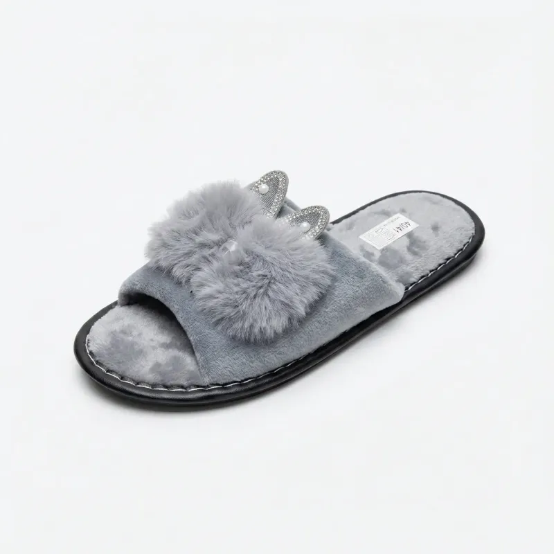 Теплі домашні шльопанці штучне хутро для жінок, ідеальні для зимових вечорів вдома. Наші капці виготовлені зі штучного хутра, мають вушки та стрази, що робить їх не тільки теплими, але і стилішними.
