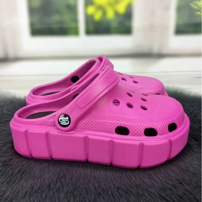Відчуй себе комфортно і стильно з нашими жіночими рожевими кроксами на високій платформі. Ці сабо виготовлені з піни EVA, що забезпечує легкість і підтримку стопи. Ідеальне пляжне та літнє взуття для жінок.