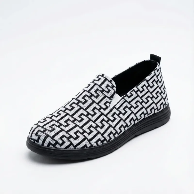 Легкі літні сліпони з трендовим принтом «геометрія». Дихаючий текстиль, гнучка чорна підошва. Зручні та м'які. Розміри 36-41. Повний опис: Додайте родзинку своєму повсякденному образу з цими стильними жіночими сліпонами. Чорно-білий геометричний візерунок (грецький орнамент) виглядає дорого та сучасно, перетворюючи просте взуття на модний акцент. Модель виконана з міцного, але м'якого в'язаного текстилю, який добре пропускає повітря. Чорна підошва не тільки практична (не брудниться так швидко, як біла), але й дуже гнучка, що забезпечує комфорт при тривалій ходьбі. Особливості: Трендовий дизайн: Геометричний принт у стилі відомих брендів пасує до джинсів, шортів та навіть суконь. Комфорт: Еластичний верх м'яко облягає ногу, не натираючи кісточки. Практичність: Чорна підошва та немаркий візерунок роблять їх ідеальним варіантом на кожен день. Характеристики: Тип: Сліпони / Мокасини / Еспадрильї Матеріал верху: В'язаний текстиль Підошва: ПВХ (гнучка, чорна) Колір: Чорно-білий (принт "Геометрія") Сезон: Літо / Тепла весна Розміри: 36-41