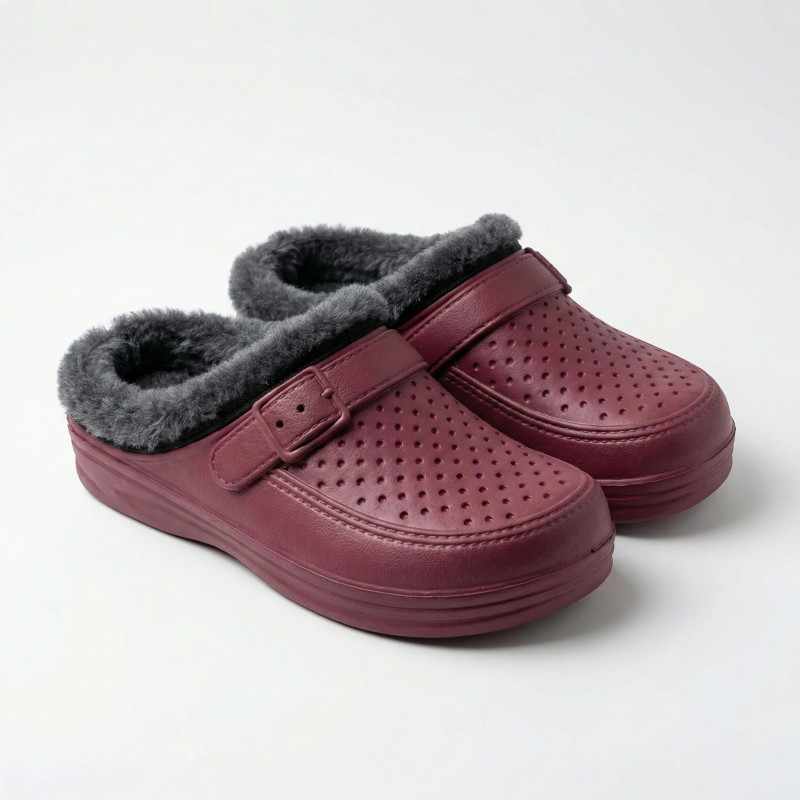 Теги: жіночі крокси, утеплені сабо, крокси на хутрі, зимові крокси, бордові крокси, домашнє взуття, теплі капці, жіноче взуття