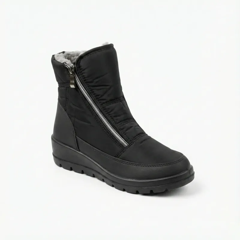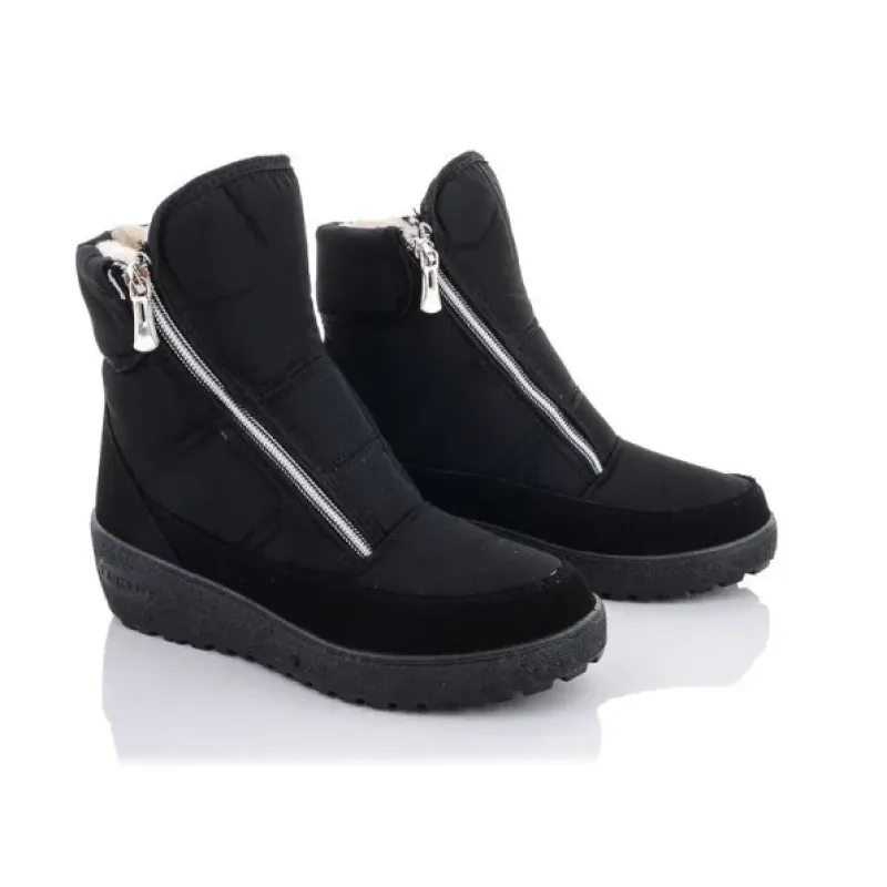 Практичні та недорогі жіночі півчобітки (дутики) чорного кольору, які стануть найкращим вибором для морозної зими. Ця модель поєднує в собі легкість спортивного взуття та тепло домашніх капців. Верх виконаний із щільного текстилю, що добре тримає тепло і не дубіє на морозі, а низ посилений вставками з еко-шкіри для захисту від вологи. Особлива увага приділена комфорту: черевики мають зручну колодку та застібаються на блискавку, що дозволяє легко взуватися людям будь-якого віку. Всередині знаходиться товстий шар штучного хутра, яке зігріває ноги навіть при тривалому перебуванні на вулиці. Підошва виготовлена з морозостійкого ПВХ, вона досить висока, щоб ноги не мерзли від землі, та має протектор проти ковзання. Чудовий варіант для торгівлі, роботи на вулиці або для літніх людей. Характеристики: Матеріал: Текстиль (плащівка) + вставки Еко-шкіри. Всередині: Тепле густе хутро. Тип застібки: Блискавка (змійка). Підошва: Лита, антиковзка. Колір: Чорний (не мазкий). Розміри: 37-42. Виробник: Україна (Kredo).
