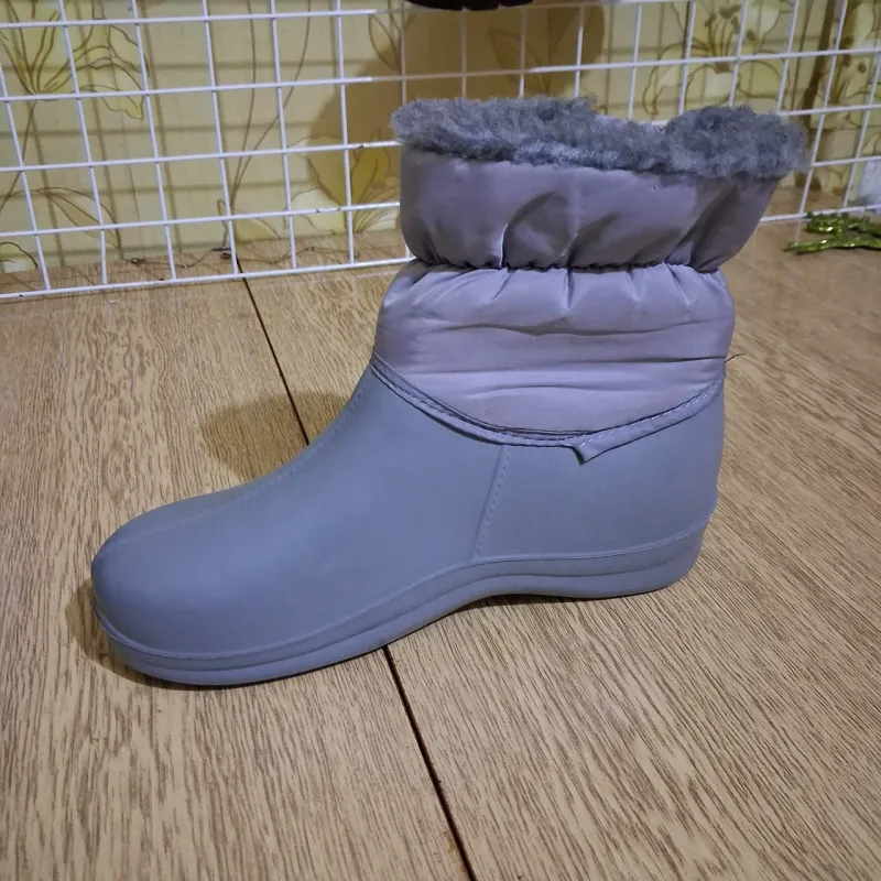 Універсальні та дуже легкі жіночі зимові чоботи-дутики у спокійному сірому кольорі. Ця модель розроблена для тих, хто шукає максимальний комфорт та захист від негоди. Нижня частина (калоша) вилита з піни ЕВА — матеріалу, який не пропускає воду, не дубіє на морозі та зберігає тепло тіла. Верхня частина виготовлена з водовідштовхувальної плащової тканини з прострочкою. Головною особливістю цієї моделі є наявність зручної бічної блискавки, завдяки якій взуття легко взувати та знімати навіть людям з високим підйомом ноги. Всередині чоботи щедро утеплені густим штучним хутром в тон взуття (сірого кольору). Підошва має рельєфний протектор для стійкості на снігу. Сірий колір є дуже практичним для осінньо-зимового періоду, оскільки на ньому менш помітні забруднення. Ідеальний варіант для щоденного носіння у сиру та холодну погоду. Характеристики: Сезон: Зима / Холодна осінь Матеріал низу: Піна ЕВА (100% захист від вологи) Матеріал верху: Текстиль (плащівка) Утеплювач: Штучне хутро Застібка: Блискавка Колір: Сірий Розміри: 36-41