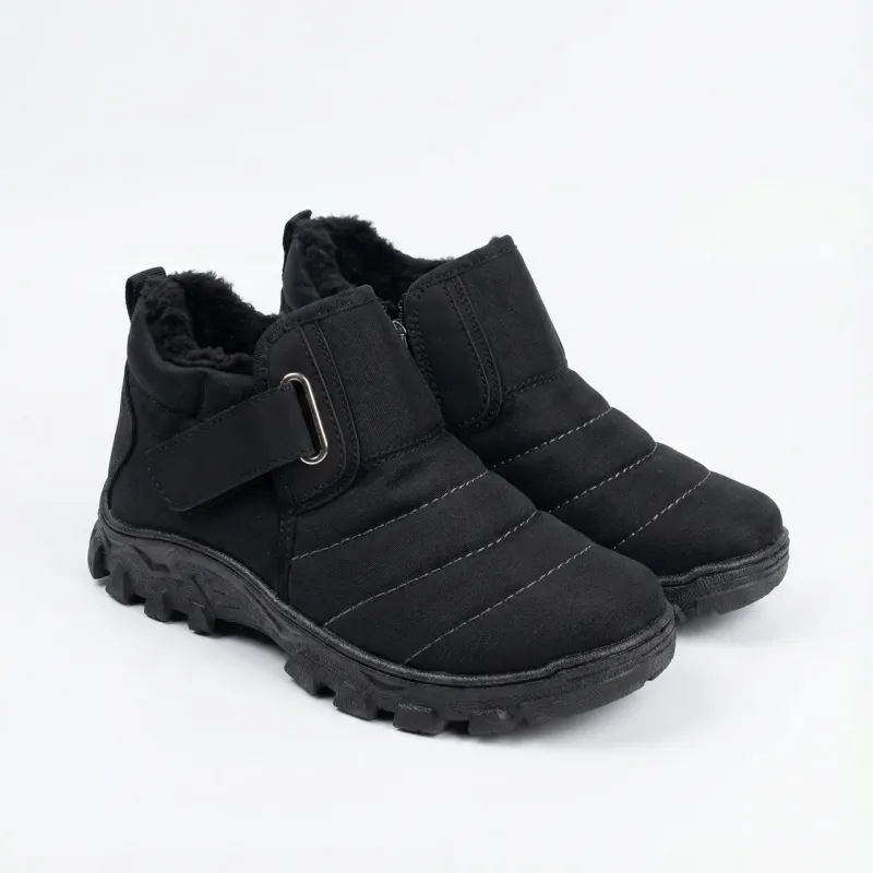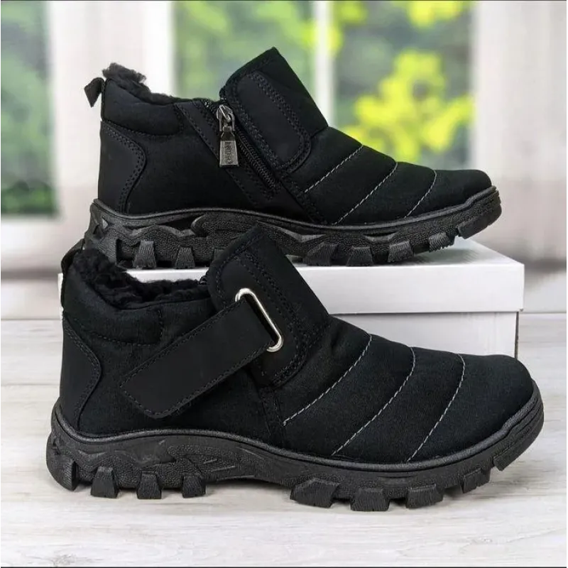 Чоловічі зимові дутики на липучці — максимальна зручність та тепло! Ця модель — ідеальне рішення для чоловіків, які шукають просте, надійне та тепле взуття на кожен день. Завдяки низькій халяві ці черевики дуже зручні для водіїв, а також чудово підходять для роботи чи прогулянок. Чому ця пара варта уваги: Подвійна зручність: Модель оснащена і блискавкою (з внутрішнього боку), і широкою липучкою (спереду). Це дозволяє ідеально відрегулювати взуття по повноті ноги та підйому. Тепло: Всередині — густе еко-хутро, яке щільно огортає ногу та зберігає тепло навіть у мороз. Захист: Верх виготовлено з міцного водовідштовхувального матеріалу з акуратною прострочкою. Носок та п'ята посилені вставками з еко-шкіри для захисту від зношування. Підошва: Масивна рельєфна підошва (протектор) забезпечує відмінне зчеплення зі слизькою поверхнею та ізолює від холоду. Характеристики: Сезон: Зима. Колір: Чорний. Матеріал верху: Текстиль (плащівка) + еко-шкіра. Утеплювач: Еко-хутро. Застібка: Блискавка + Липучка. Розміри: 41, 42, 43, 44, 45. 🥾 Замовляйте чоловічі дутики на липучці — комфорт та тепло гарантовані!