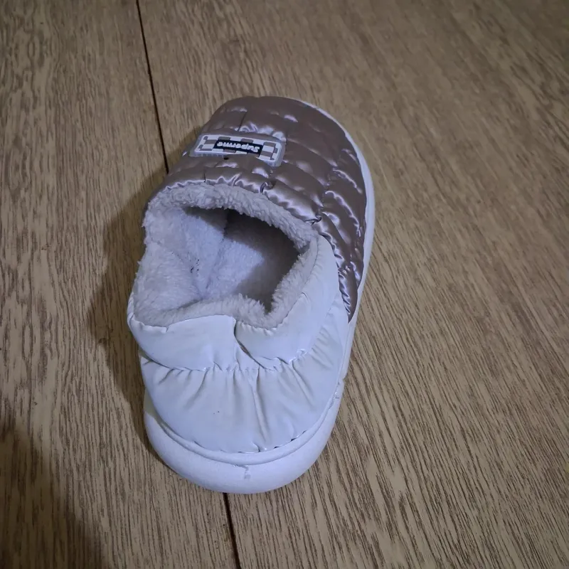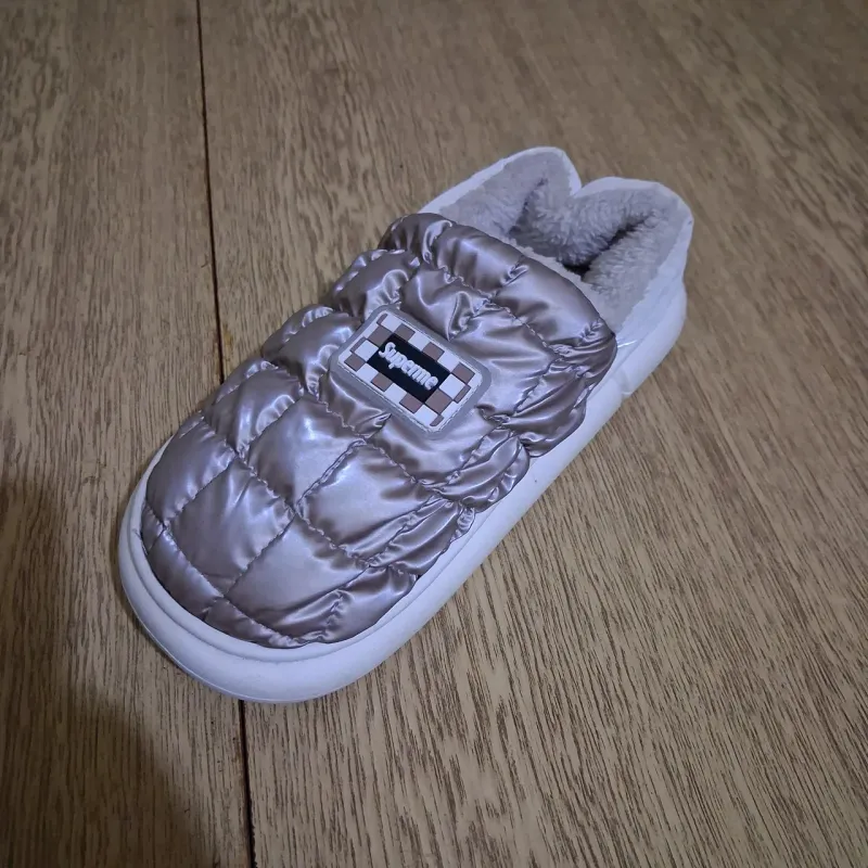 Додайте футуристичного стилю у свій домашній гардероб із трендовими дутими капцями "Superme" у кольорі сріблястий металік. Ця модель — справжній хіт сезону завдяки своєму яскравому дизайну та неймовірному комфорту. Широкий розмірний ряд (36-45) робить їх ідеальним варіантом як для жінок, так і для чоловіків (Family Look). Верх виконаний з водовідштовхувальної плащової тканини з ефектом металік, яка легко чиститься від забруднень і виглядає дуже сучасно. Всередині тапочки утеплені густим штучним хутром, що забезпечує тепло навіть у найхолодніші дні. Завдяки закритому носку та "дутій" структурі створюється ефект термоса, який чудово зберігає тепло. Ці сріблясті шльопанці мають міцну та гнучку підошву, тому їх можна носити не лише вдома, а й вибігти на подвір'я. Це чудовий подарунок для друзів, рідних або другої половинки. Характеристики: Тип взуття: Дуті капці / Шльопанці / Унісекс Сезон: Зима / Осінь Матеріал верху: Плащівка (колір Срібло/Металік) Матеріал підкладки: Тепле штучне хутро Підошва: ПВХ (зносостійка, гнучка) Особливості: Стиль "дутик", напис Superme, універсальний дизайн Колір: Сріблястий (Сірий металік) Розміри: 36-45 Країна виробник: Китай
