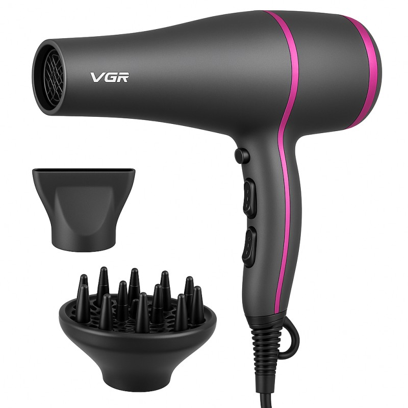 | Назва | Профессиональный мощный фен с насадками VGR V-402 с концентратором и дифузором для сушки и укладки волос |
