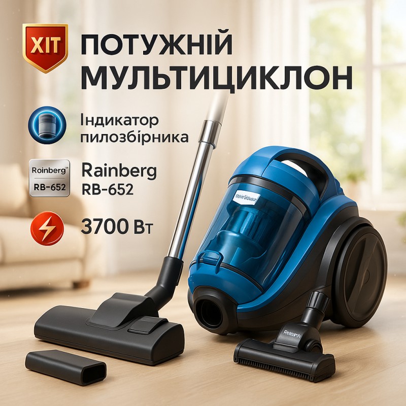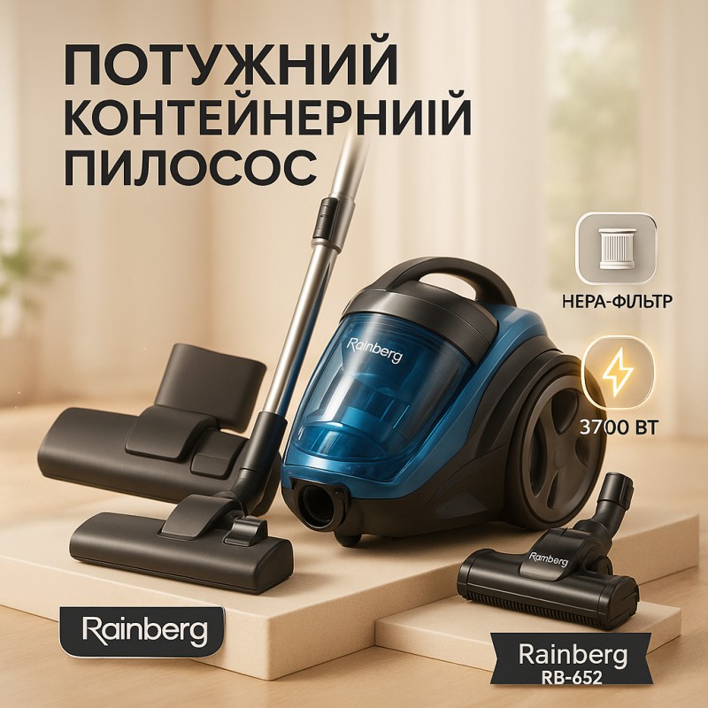 | Назва | Пылесос контейнерный Rainberg RB-652 турбощётка 3700 Вт 4 л |