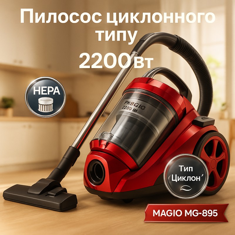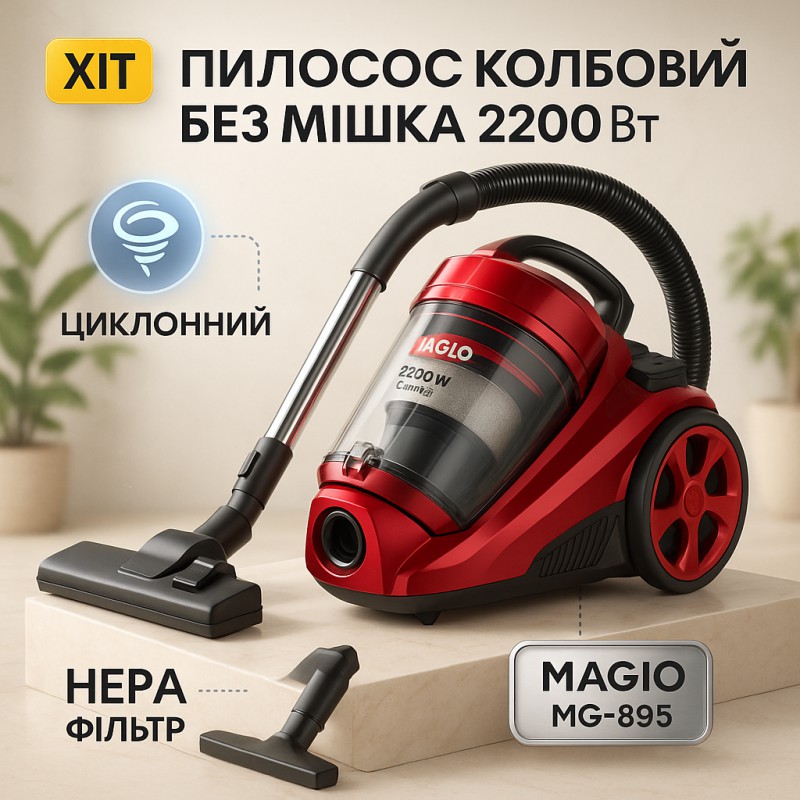 НазваПылесос Magio MG-895, Колбовый пылесос без мешка, Хороший пылесос для дома, Пылесос для дома мощный