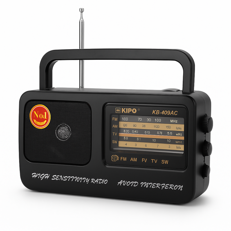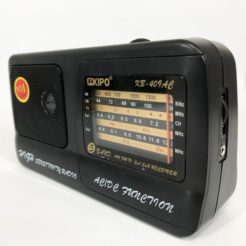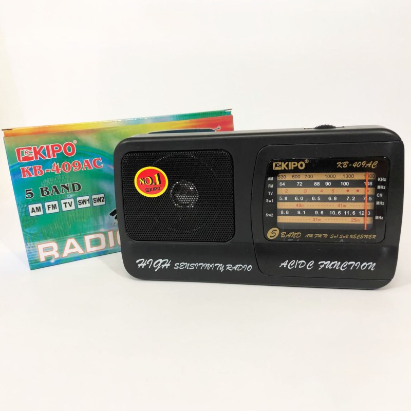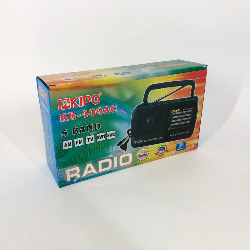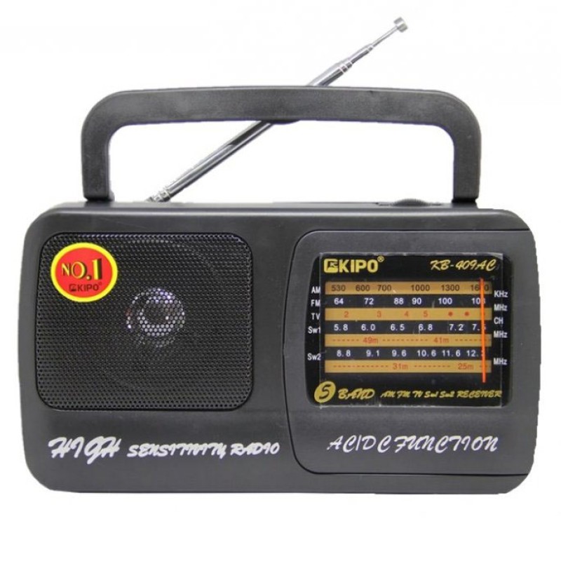 Радіоприймач Kipo KB 409 АС ― плавні лінії корпусу, великий покажчик частот, телескопічна антена ― простий, але має всі необхідні для радіоприймання апарат. При необхідності може працювати на звичайних батареях і від мережі 220 V. Надійний радіоприймач, розширений діапазон FM.