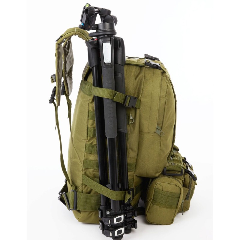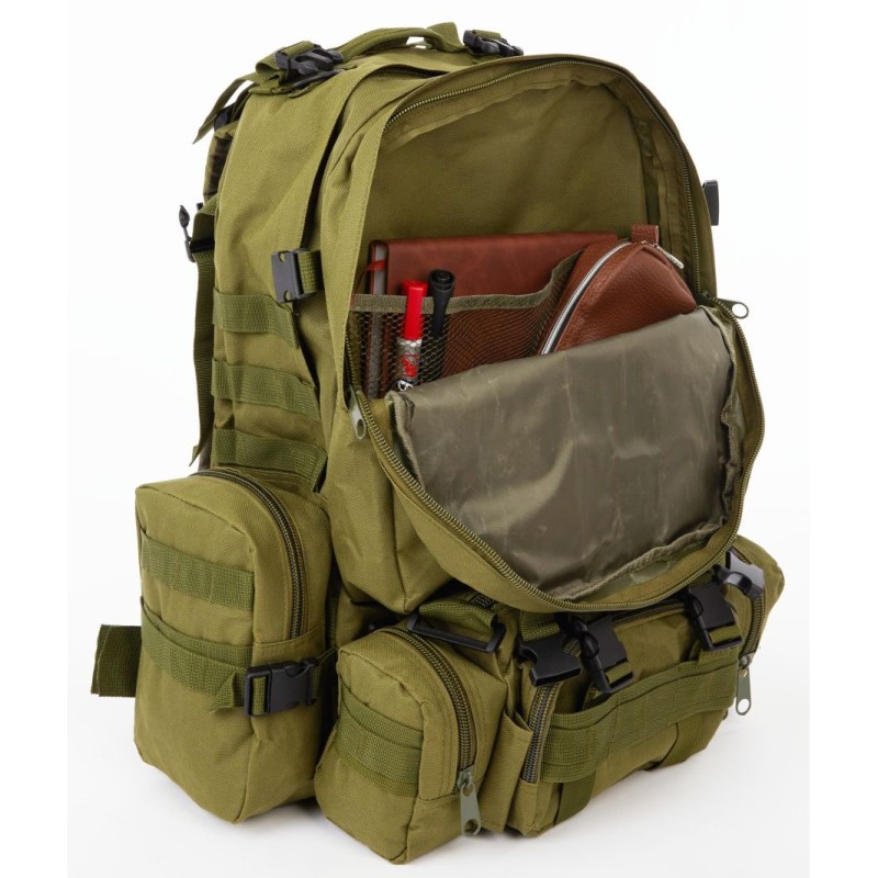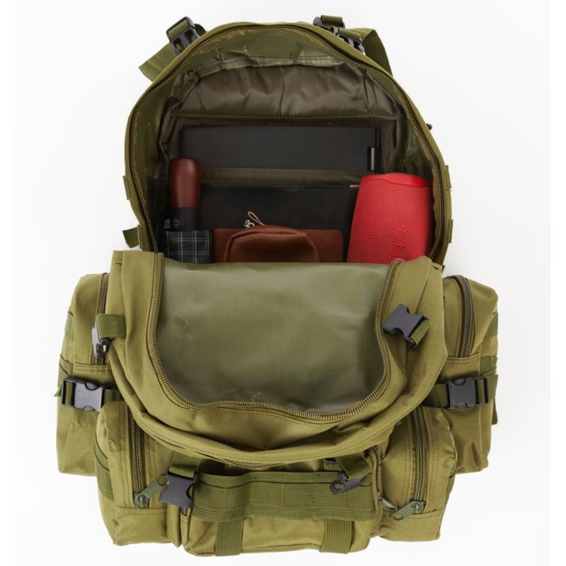 Тактичний рюкзак олива має багато внутрішніх та зовнішніх кишень на застібках, м'яку спинку з вентиляційними ходами, компресійні стяжки, а також м'які плечові ремені. За допомогою ременів, що регулюються, можна легко підігнати рюкзак під себе. Рюкзаки чоловічі можуть також використовувати і жінки, оскільки вони вважаються унісекс.