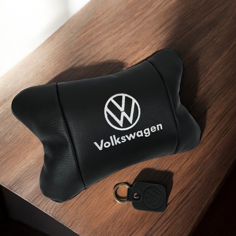 Автомобільна подушка Volkswagen з натуральної шкіри, 1 шт + брелок у подарунок