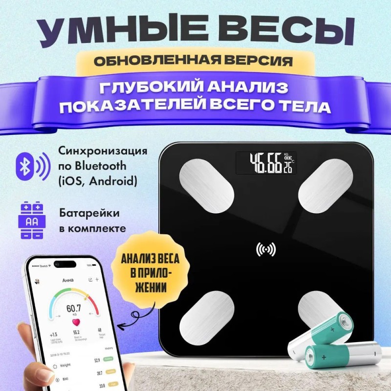 | Назва | Смарт ваги для підлоги, електронні Domotec MS-2017A з додатком на телефон, до 180 кг |