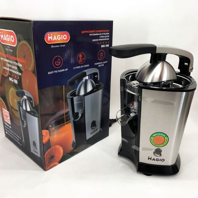 | Назва | Соковитискач для цитрусових MAGIO MG-188, соковитискач для яблук, соковитискач для ягід |