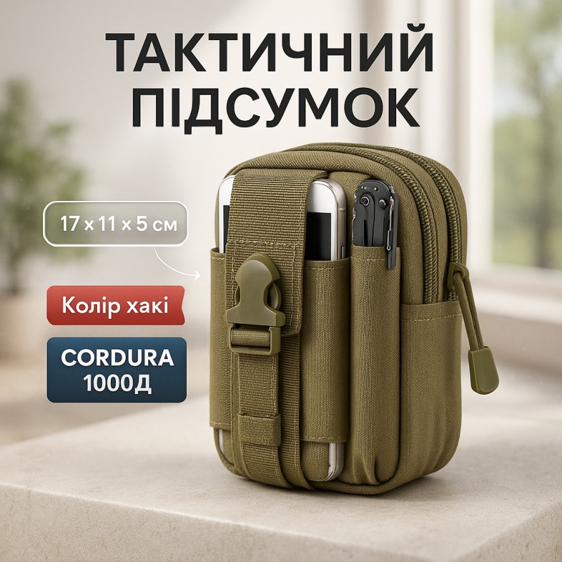 НазваТактическая сумка - подсумок для телефона, система MOLLE органайзер тактический из кордуры. Цвет: хаки