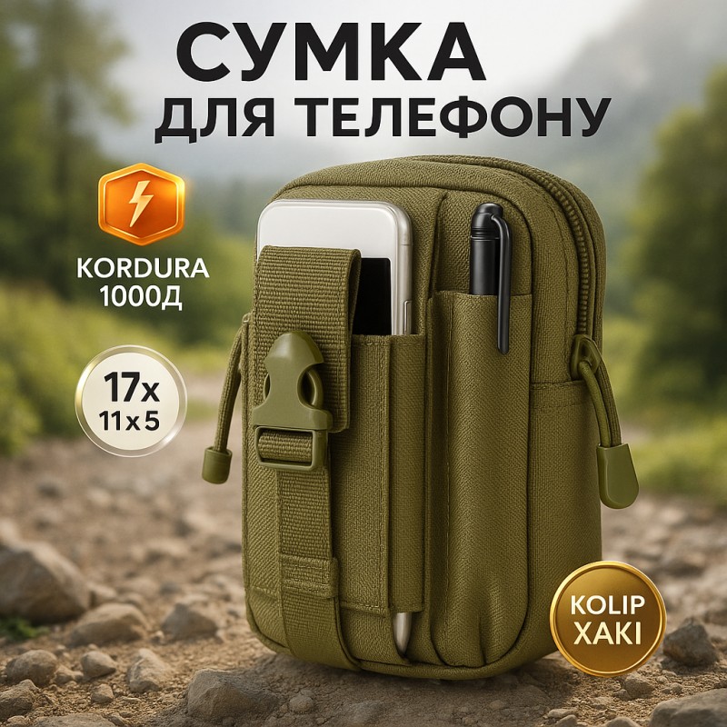 Професійна підсумка для телефона, виготовлена з високоякісної кордури, кольору хакі. Підходить для використання в умовах високих вимог до надійності та зручності.