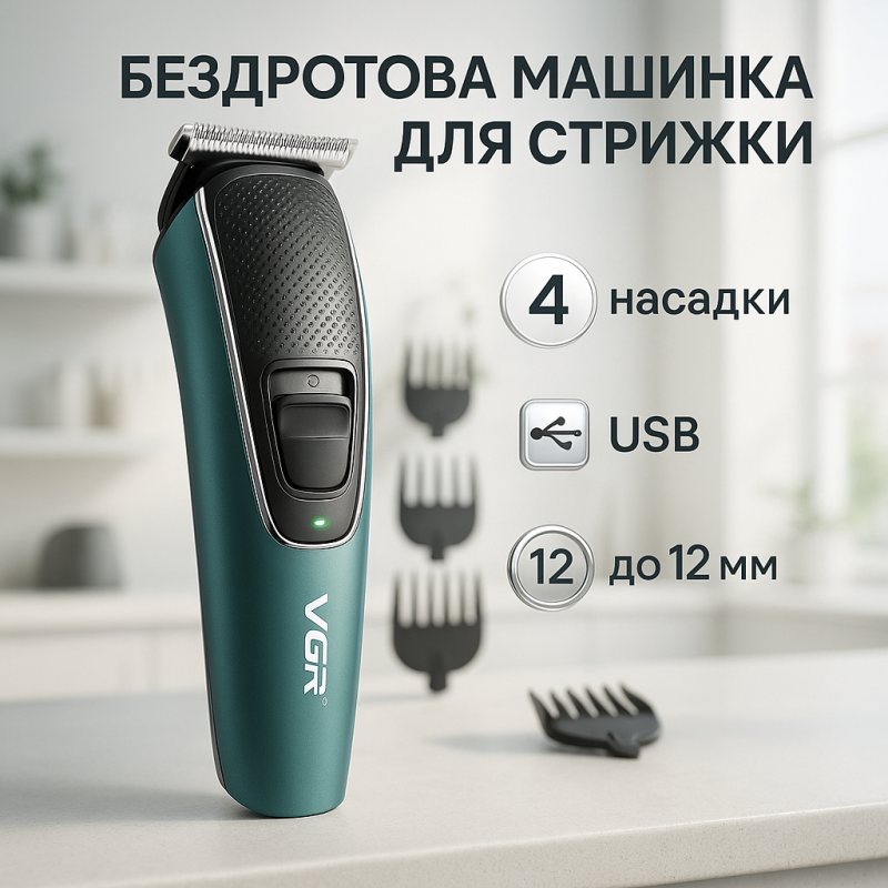 НазваТример для бороди та волосся VGR V-176 від USB, Професійний триммер для стрижки