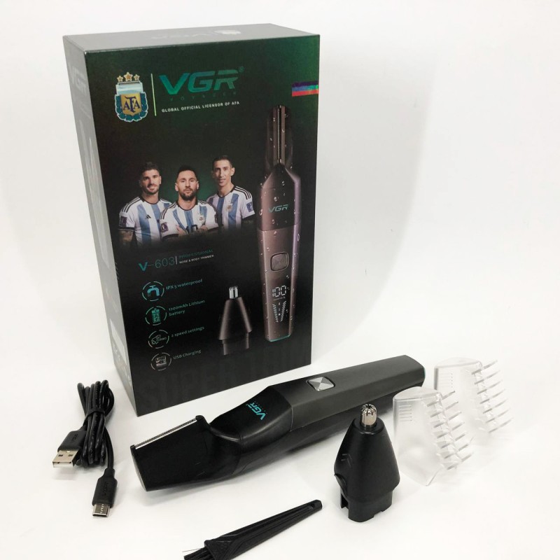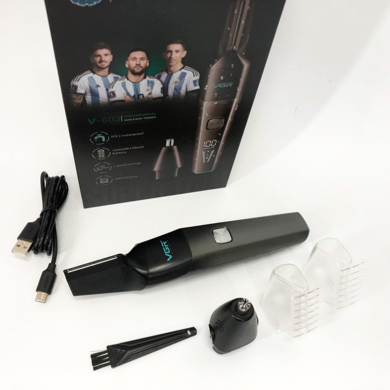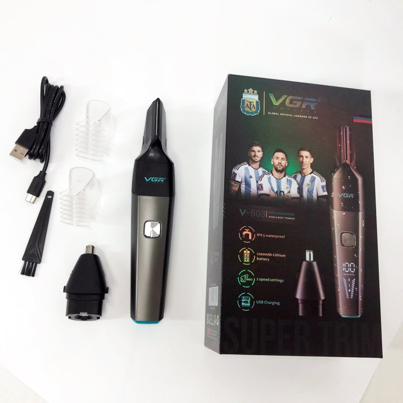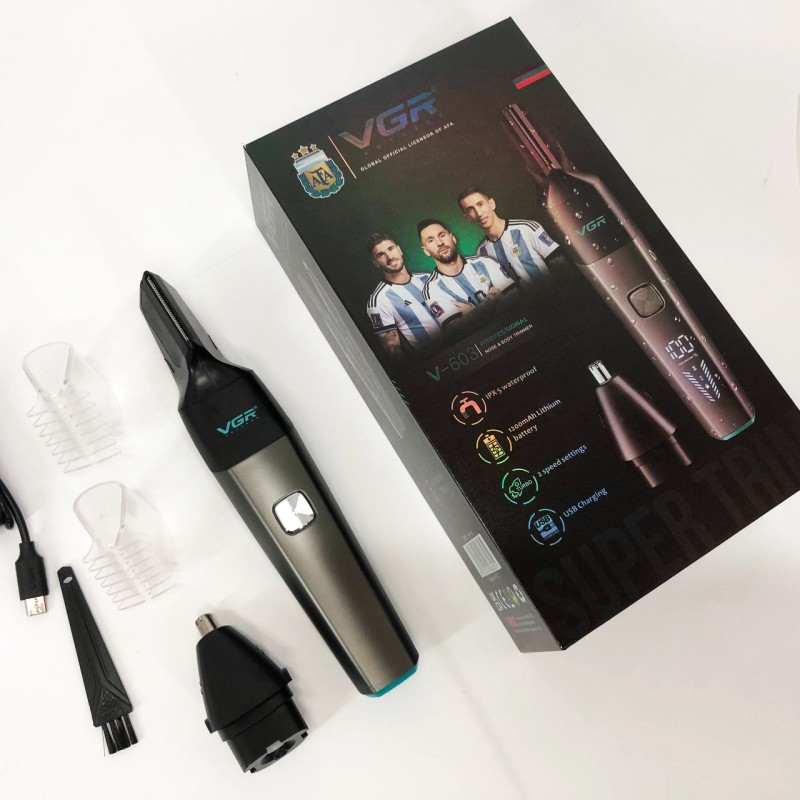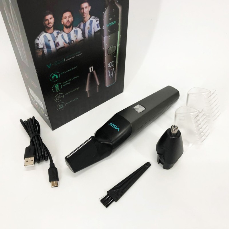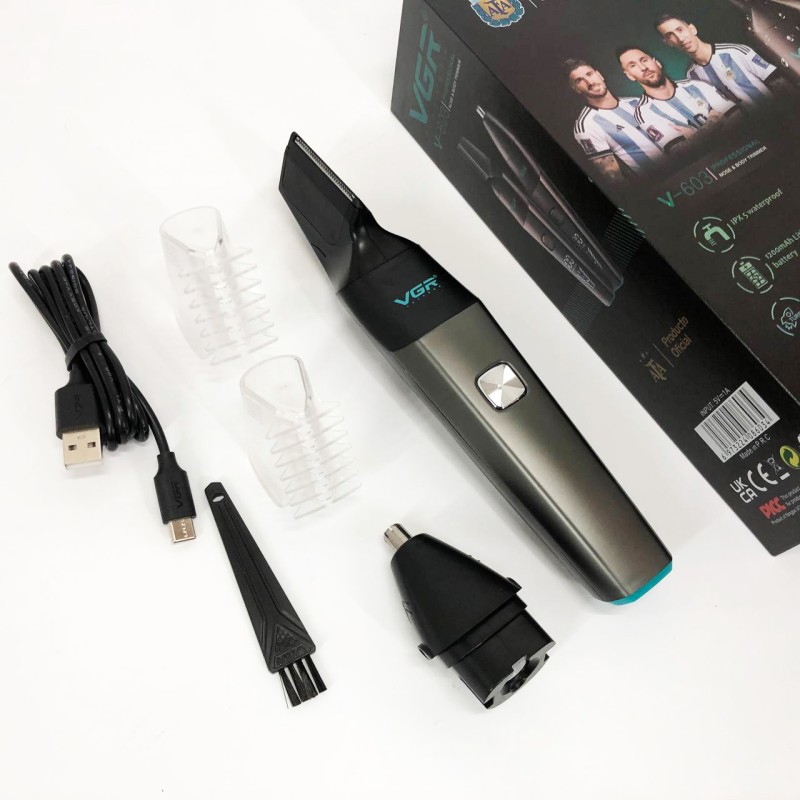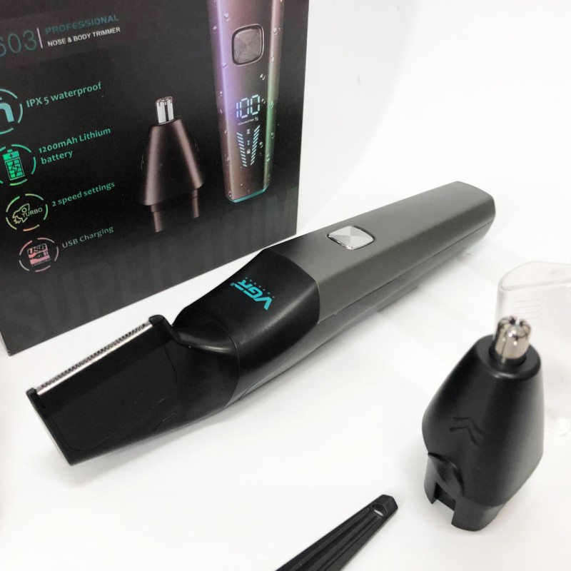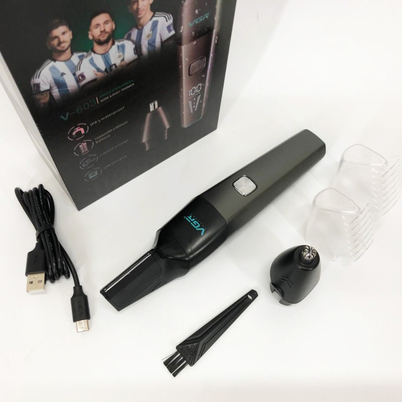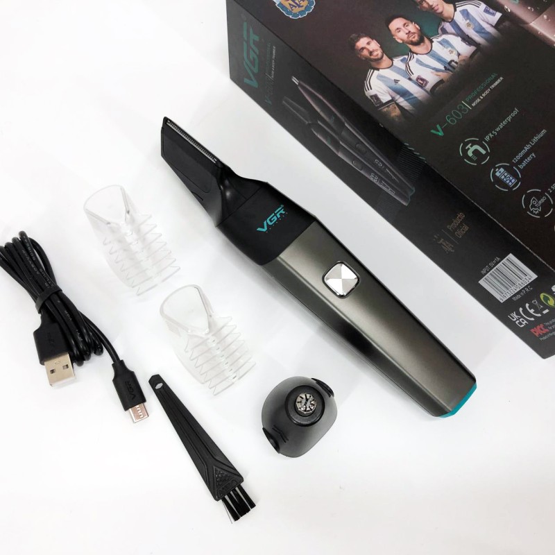 Тример акумуляторний VGR V-603 призначений для дбайливого видалення небажаних волосків у носі та вухах, а також окантування шиї, скронь та бороди. Зручна головка забезпечує швидке, просте та комфортне підрівнювання без неприємних відчуттів. Тример працює від акумулятора, який заряджається від USB, що робить його універсальним і незамінним у далеких поїздках, адже його можна заряджати від автомобільної зарядки або павербанка.