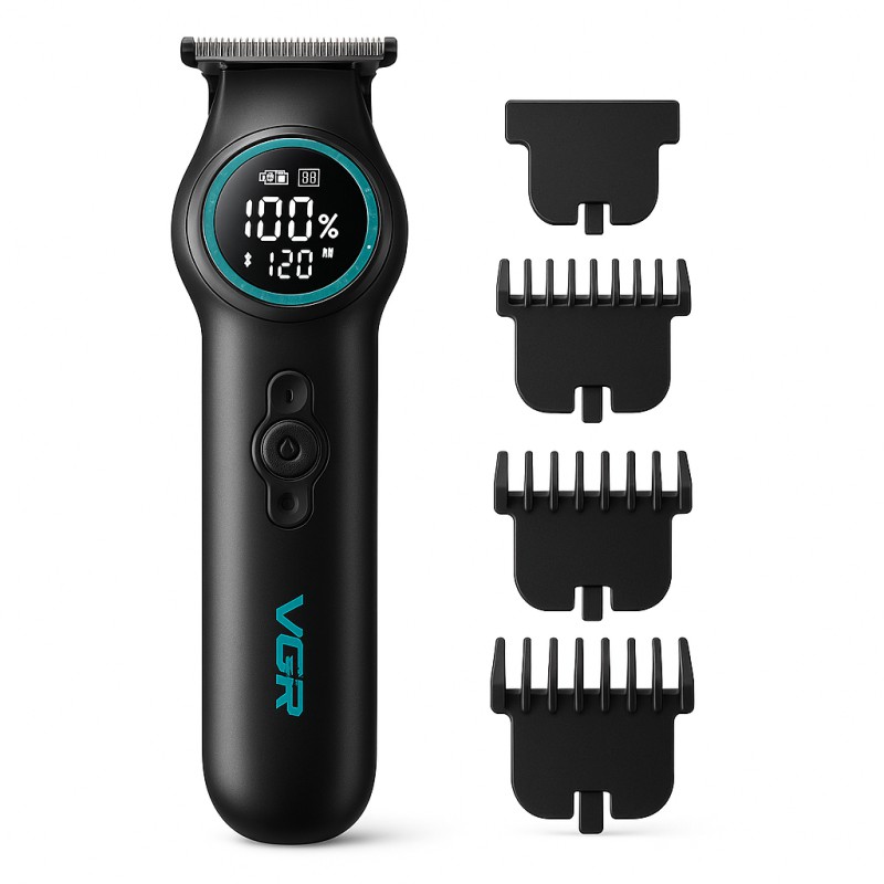 Триммер VGR V-990 с 3 насадками, керамическим лезвием, TURBO режимом, регулировкой мощности 7000-8000 об/мин, LED подсветкой и LED дисплеем