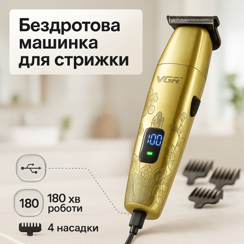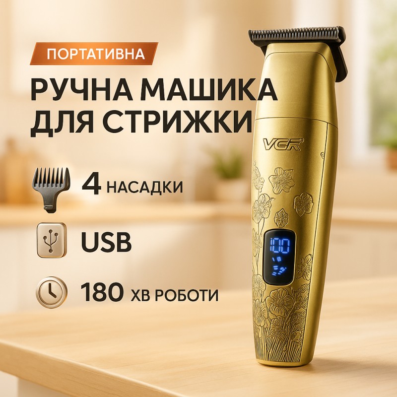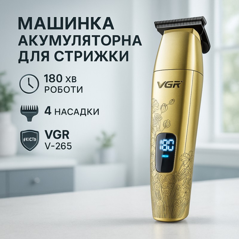 В комплект входят 4 насадки, позволяющие гибко регулировать длину стрижки и адаптировать триммер под разные задачи и стили. LED-дисплей информирует пользователя о текущем уровне заряда и состоянии устройства, что обеспечивает удобство и контроль во время эксплуатации. Триммер VGR V-265 — это сочетание мощности, автономности и функциональности в компактном и надёжном корпусе.
