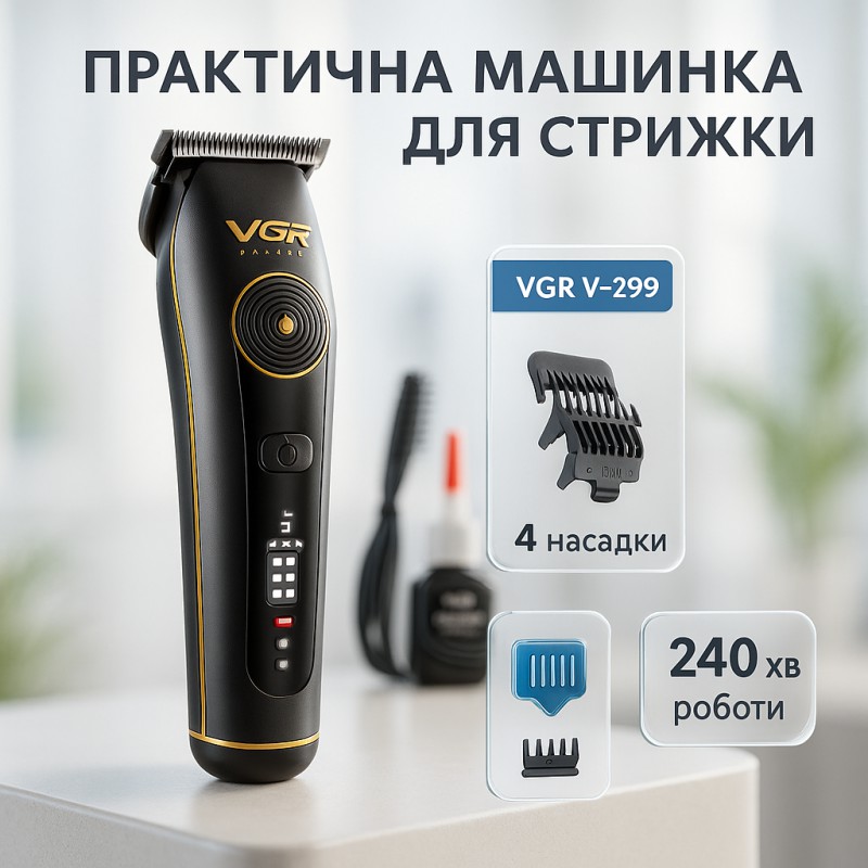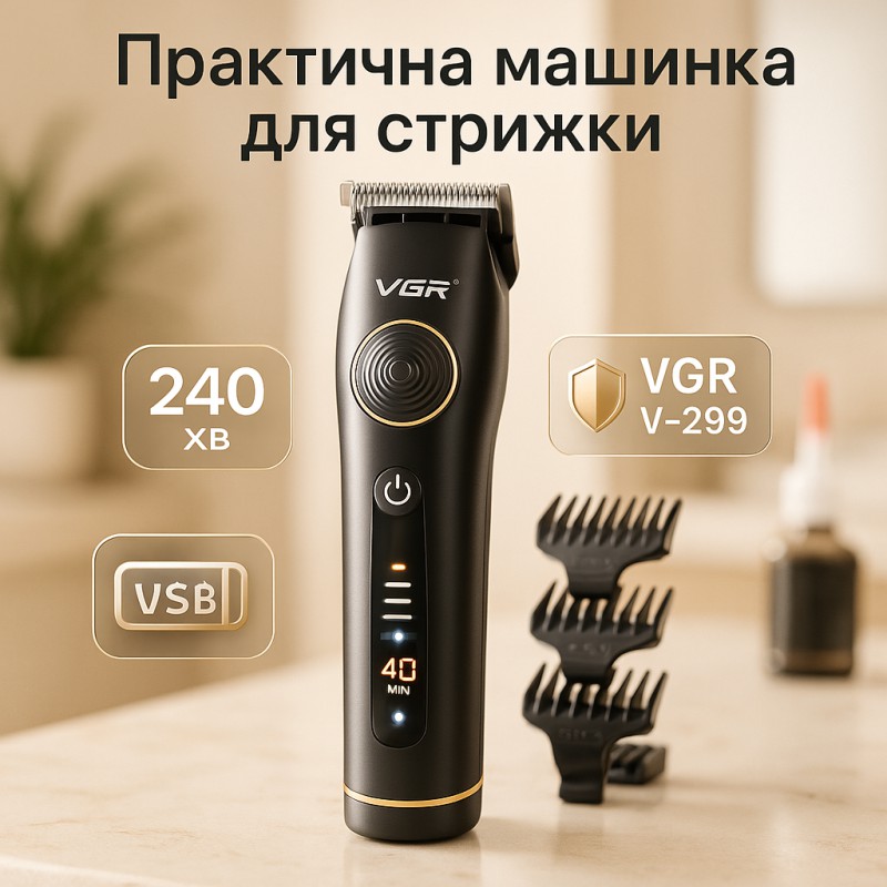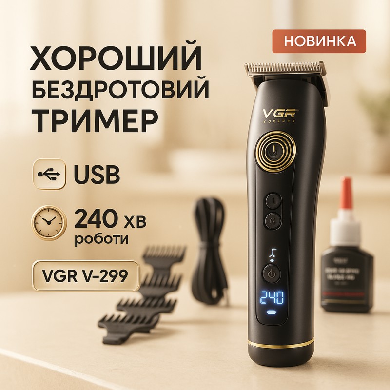 Модель комплектуется 4 насадками и поддерживает 5 уровней регулировки скорости, что позволяет точно настраивать работу триммера под конкретные задачи — от точной окантовки до ухода за густой бородой. LED-дисплей отображает уровень заряда, текущую скорость, а также напоминание о необходимости обслуживания, обеспечивая контроль и удобство в процессе эксплуатации. VGR V-299 BLACK — это сочетание мощности, точности и функциональности в одном стильном и практичном устройстве.