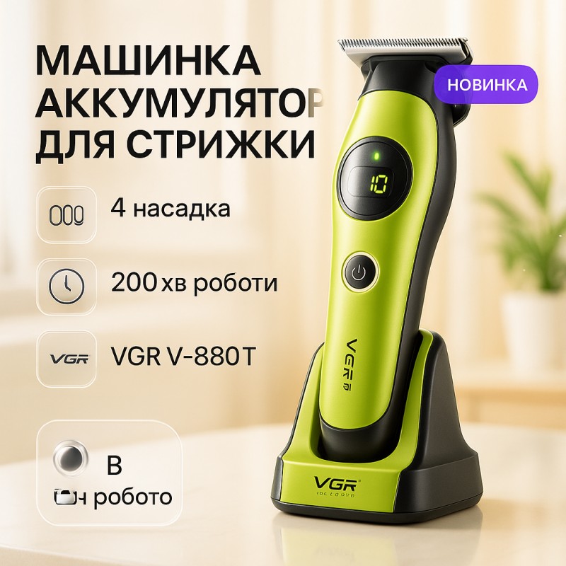 Аккумуляторная машинка для стрижки VGR V-880T сочетает в себе функциональность, удобство и высокое качество. Триммер для стрижки волос на аккумуляторе VGR V-880T станет отличным выбором для парикмахеров и домашних пользователей, которые ценят надёжность и комфорт.