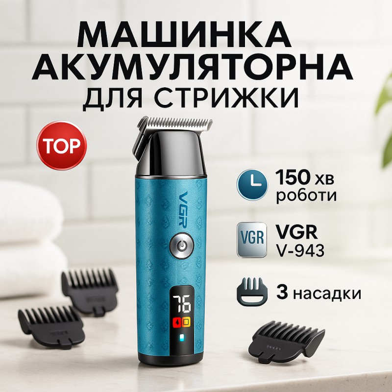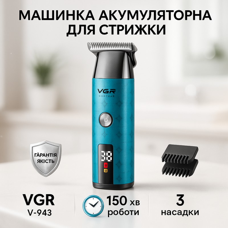 В комплект входят 3 сменные насадки, позволяющие регулировать длину среза и подстроить триммер под разные зоны ухода, от щетины до аккуратной окантовки. Интуитивный LED-дисплей отображает уровень заряда и текущий режим работы, обеспечивая удобство и контроль в процессе использования. VGR V‑943 BLUE— это стильное, простое и функциональное решение для тех, кто ценит качество и удобство в уходе за собой.