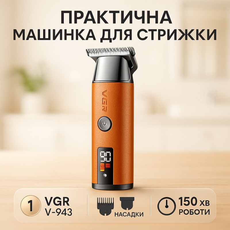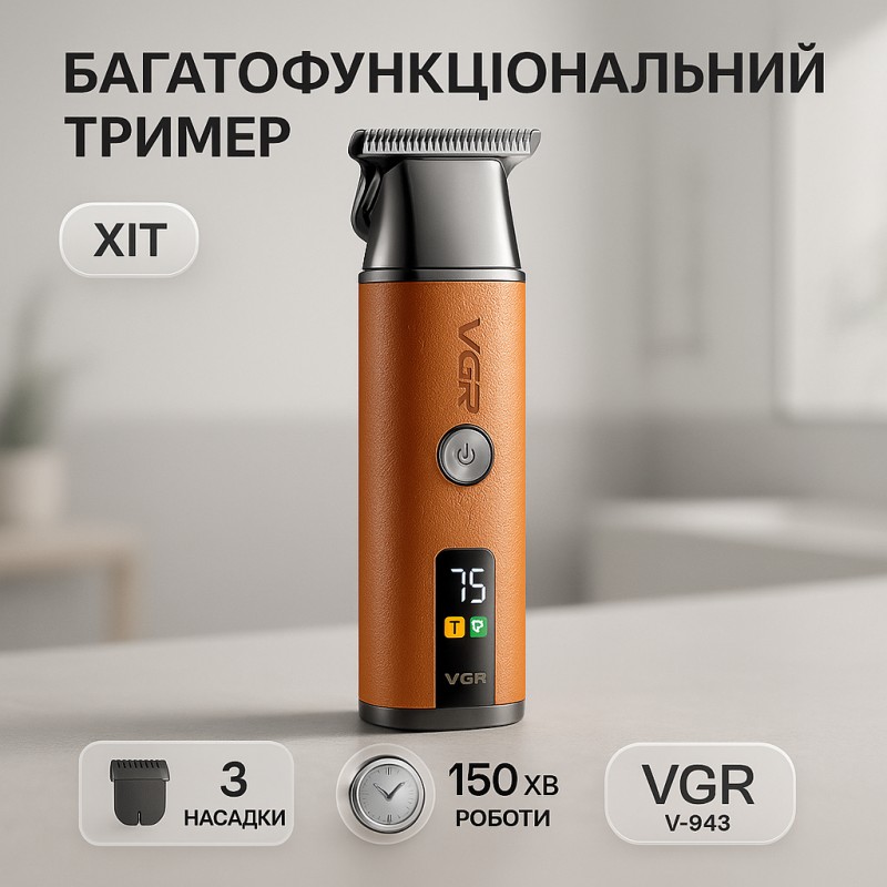 В комплект входят 3 сменные насадки, позволяющие регулировать длину среза и подстроить триммер под разные зоны ухода, от щетины до аккуратной окантовки. Интуитивный LED-дисплей отображает уровень заряда и текущий режим работы, обеспечивая удобство и контроль в процессе использования. VGR V‑943 BLUE— это стильное, простое и функциональное решение для тех, кто ценит качество и удобство в уходе за собой.