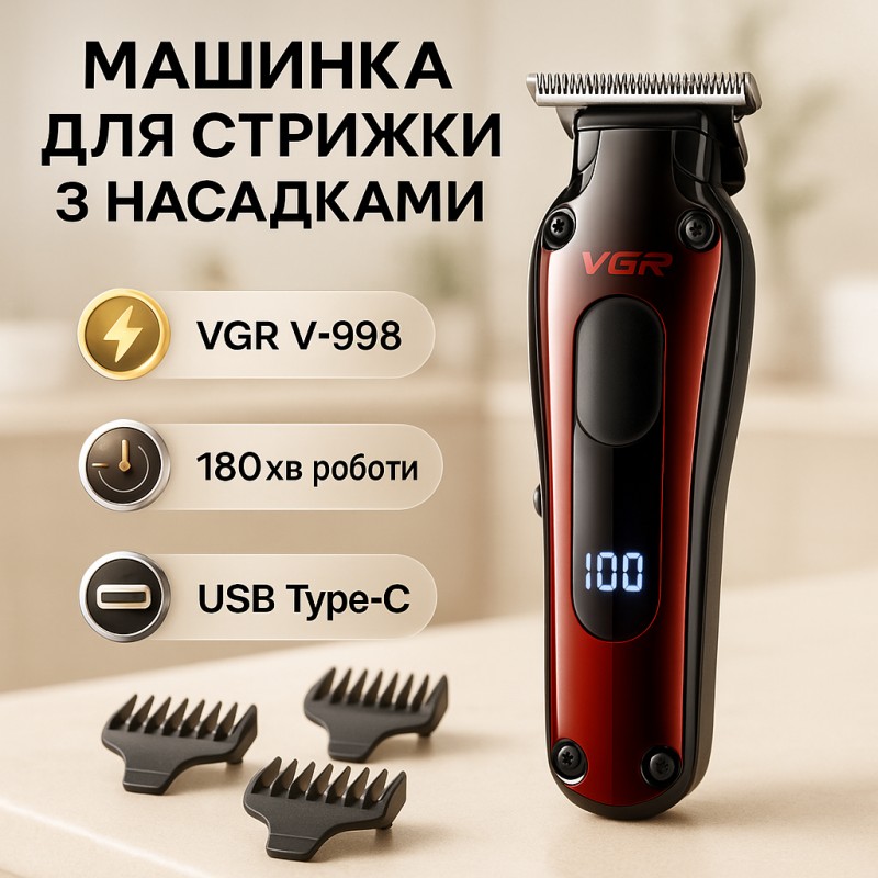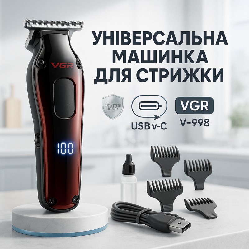 Аккумуляторная машинка для стрижки VGR V-998 сочетает в себе функциональность, удобство и высокое качество. Триммер для стрижки волос на аккумуляторе VGR V-998 станет отличным выбором для парикмахеров и домашних пользователей, которые ценят надёжность и комфорт.