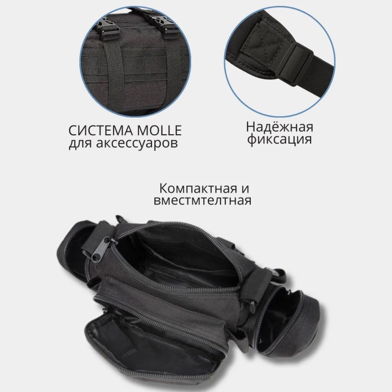Ця тактична сумка – ідеальне рішення для активних людей! Ви можете використовувати її як поясну сумку, носити через плече або закріпити на спорядженні завдяки системі MOLLE. Підходить для військових, туристів, рибалок, мисливців та навіть велосипедистів. Завдяки компактним розмірам та великій кількості кишень, вона чудово підходить для повсякденного використання та екстремальних умов.