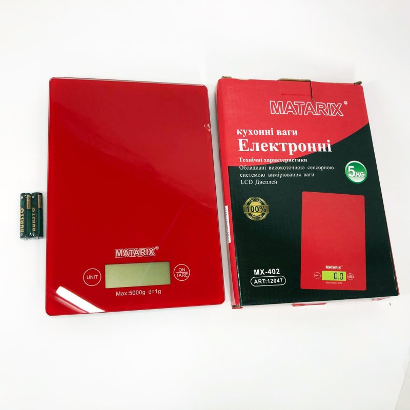 | Назва | Ваги кухонні MATARIX MX-402 5 кг з дисплеєм, Ваги кухонні для продуктів домашні. Колір: червоний |