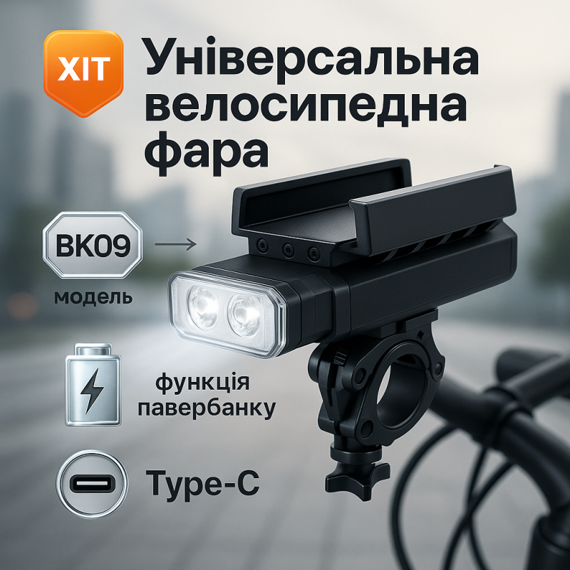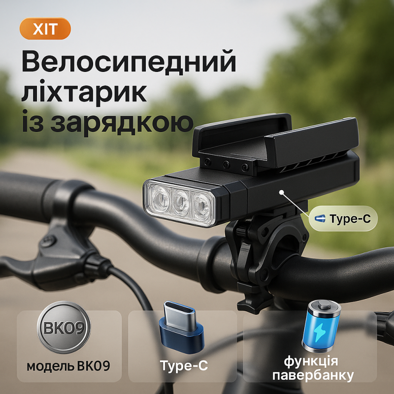 Високопотужні світлодіоди гарантують яскравий світловий потік, роблячи поїздки у темний час доби безпечними. Міцний корпус захищає від вологи та ударів, а вбудований Power Bank дозволяє завжди залишатися на зв'язку. Це ідеальне рішення для любителів активного відпочинку, велоподорожей та щоденних міських поїздок.