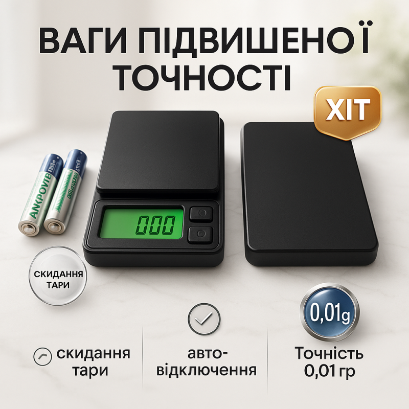 • Функции: подсветка экрана, функция сброса тары, автоотключение