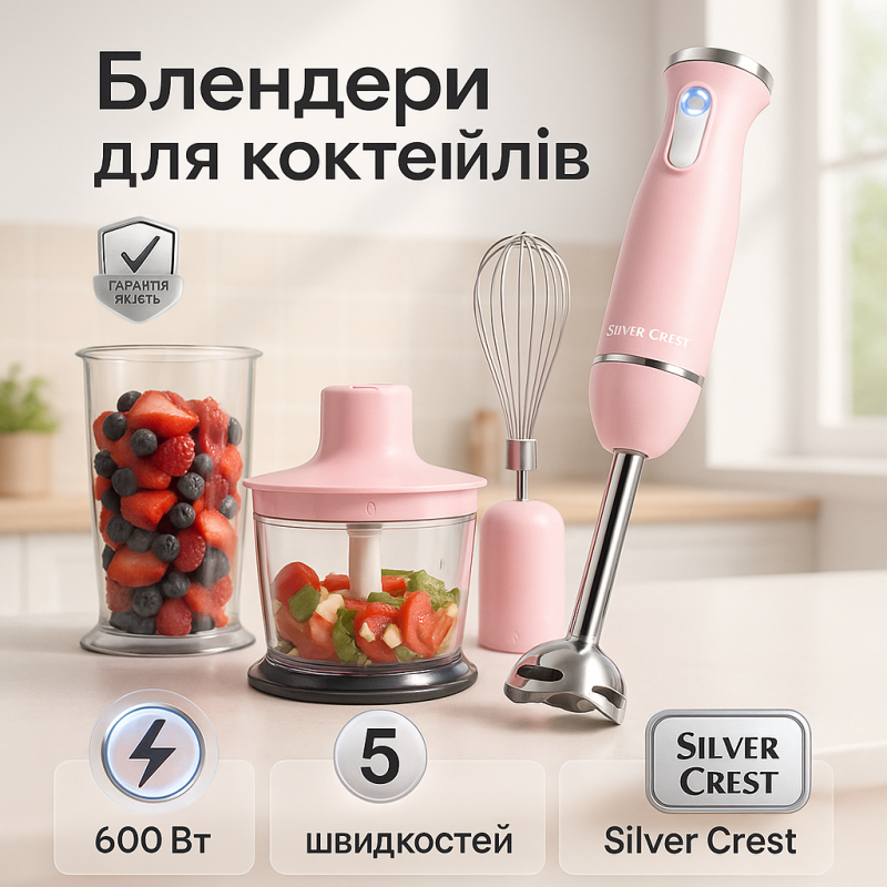 Занурювальний блендер Silver Crest SSMS 600 D4 Pink можна замовити в інтернет-магазині Shtyrman. Перевіряйте модель, виробника, наявність і характеристики перед покупкою.