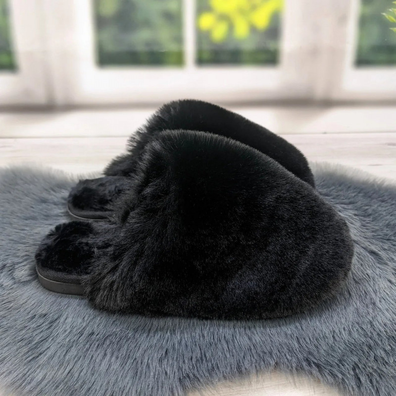 Теги: жіночі капці, домашні капці, пухнасті, еко-хутра, чорний колір, теплий одяг, домашній комфорт