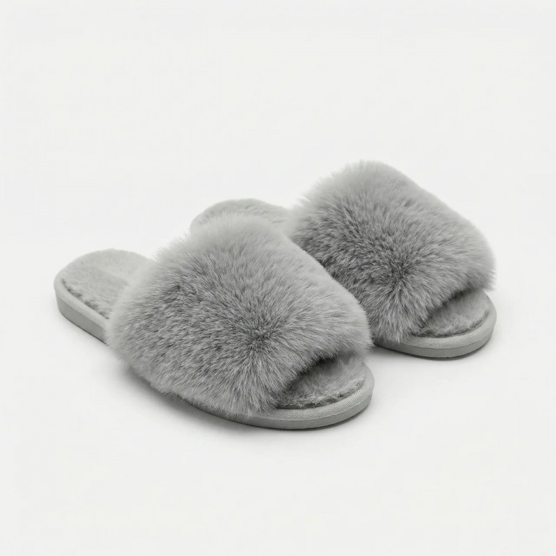 Жіночі пухнасті тапочки сірі з хутром. М'які домашні капці відкриті (36-41) можна замовити в інтернет-магазині Shtyrman. Перевіряйте модель, виробника, наявність і характеристики перед покупкою.